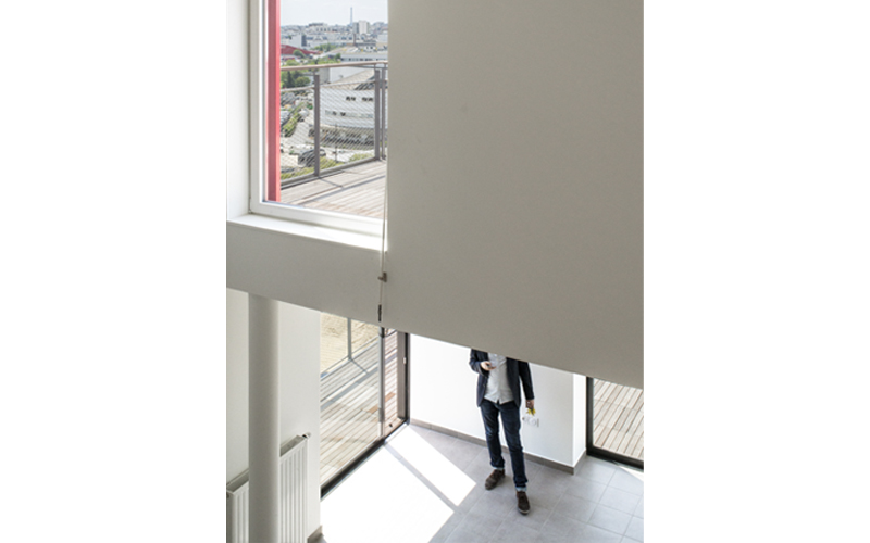 L’espace habitable de chaque appartement est maximal. Des volumes “extra-ordinaires” en double hauteur sont créés. Les espaces de dessertes dans les appartements (couloirs, sas) sont réduits au bénéfice des espaces communs, tout en respectant le cahier des charges du client, l’intimité propre à chaque pièce, ainsi que les normes d’accessibilité.